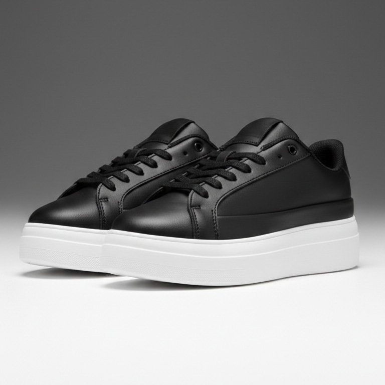 کفش ونس برشکا مشکی سفید زیره 3 سانتی | کتانی اسپرت مینیمال مردانه و زنانه